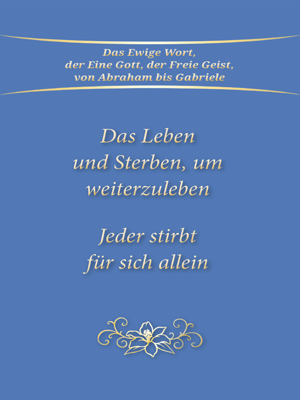 Mit diesem Buch erhalten Sie Einblick in bislang unbekannte Zusammenhänge von Leben und Tod und in das, was die Seele eines Menschen nach dem Hinscheiden des physischen Leibes drüben, im Jenseits, erwartet. Es werden auch Antworten auf aktuelle Fragen unserer Zeit gegeben, z.B.: Wie kann man die Organtransplantation aus geistiger Sicht beurteilen? Dieses Buch geht jeden an, der von der Angst vor dem Tod zum bewussten Leben, zu Sicherheit, Gelassenheit und innerer Standfestigkeit finden möchte. Denn, so schreibt Gabriele: „Wer sein Leben zu verstehen lernt, fürchtet sich nicht mehr vor dem Tod.“